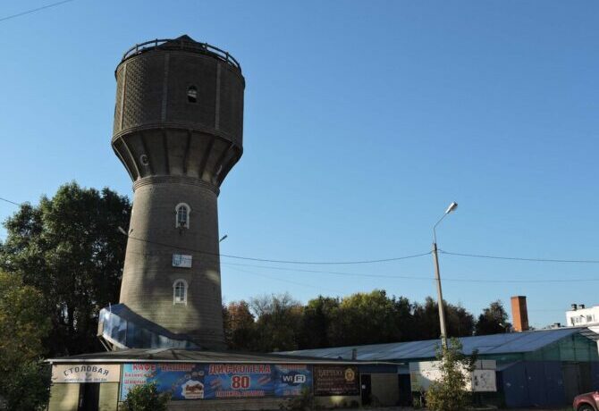 Недалеко от «блошиного» рынка находится старая водонапорная башня. Ее построили в 1926 году по проекту Якоби. Пока не появились высотные новостройки, она считалась самым высоким сооружением города (28 м). Когда система водоснабжения была заменена на современный аналог, башня оказалась не у дел. Власти долго думали, как приспособить архитектурную достопримечательность к нуждам жителей города. Наконец, отдали ее под сервисные услуги. Сейчас в башне работает салон красоты и располагается кафе. В нем можно заказать шашлык, напитки, по выходным потанцевать на дискотеке.