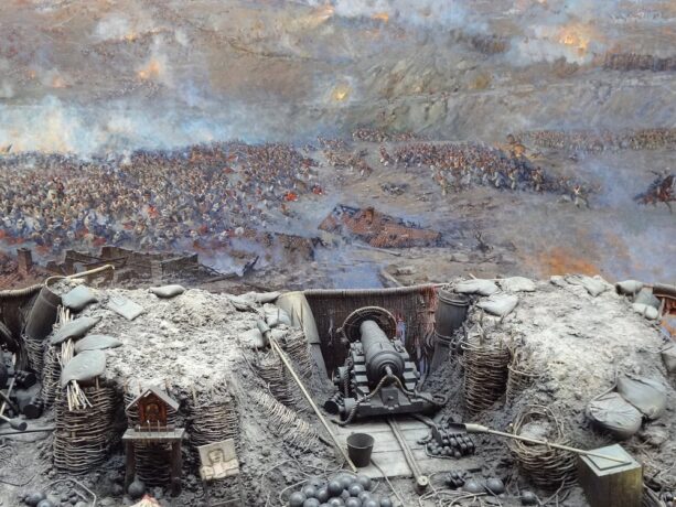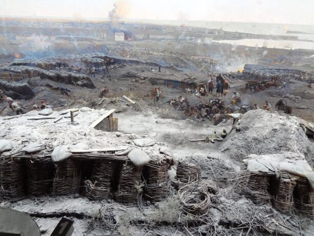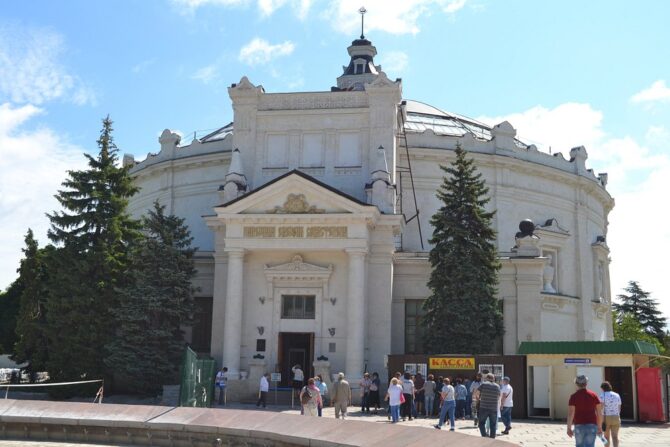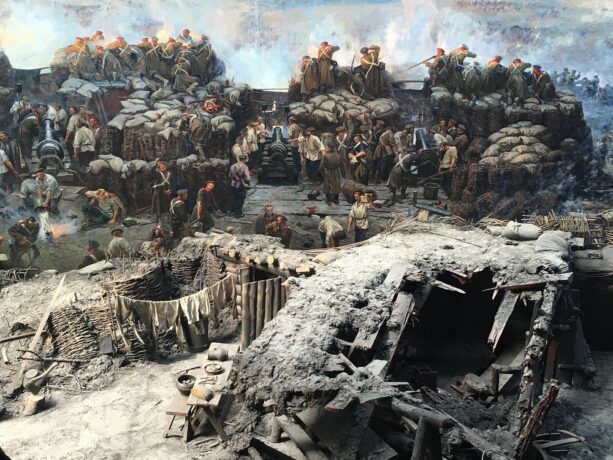 Крымской войне посвящена и другая достопримечательность Севастополя – музей Панорамы. В начале XX в. художник Ф. Рубо стал воплощать в жизнь проект по созданию панорамы, посвященной баталиям Крымской войны, а именно обороне Севастополя. Около двух лет потребовалось для того, чтобы посетить места боевой славы, пообщаться с очевидцами тех событий. В итоге Рубо остановился на сюжете, посвященном героическому отражению штурма Малахова Кургана. Художник сделал множество этюдов, прежде чем начать «собирать» полотно. 14 мая 1905 года панорама была открыта. Ее дальнейшая история была столь же драматична, как и события изображенные Рубо. Во времена Великой Отечественной войны здание музея оказалось под артобстрелом и загорелось. В экстренном порядке сотрудники музея разрезали полотно на множество частей для эвакуации из пострадавшего здания. После войны в 50-е гг. панорама была полностью реконструирована, экспозиция открылась для зрителей 1954 году на прежнем месте в восстановленном здании музея на Бульварной площади.