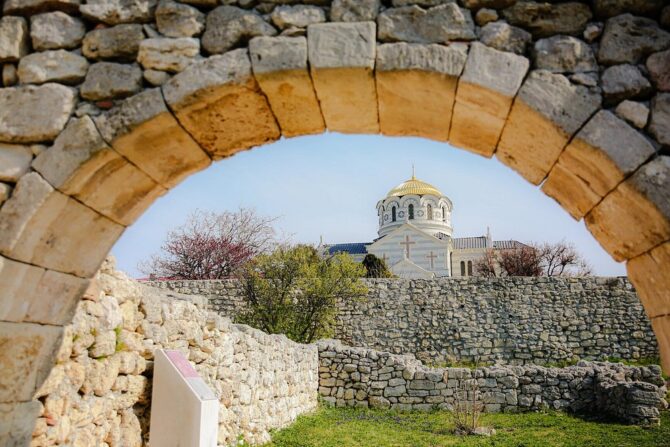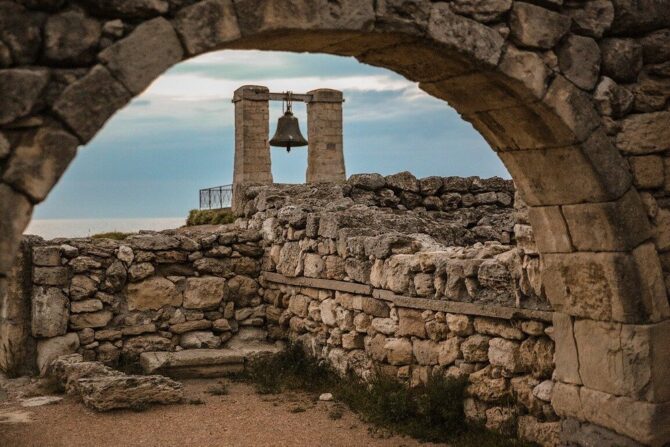 Архитектурные памятники древнего города-полиса – это великолепные атмосферные объекты показа экскурсий по Херсонесу. Оказавшись здесь, невозможно пройти мимо Амфитеатра, храмов и базилик, древних ремесленных кварталов, монетного двора, 9-метровой оборонительной башни и, конечно же, Херсонесского колокола. Он, к слову, имеет еще два названия: Туманный и Сигнальный. По преданию он был отлит из трофейных турецких пушек. На его поверхности есть соответствующая надпись, повествующая об этом. Также на нем изображены святые Николай и Фока – покровители моряков. После Крымской войны колокол был вывезен из России в качестве трофея и каким-то образом очутился во Франции на колокольне Собора Парижской Богоматери. Только в 1913 году он был возвращен в Российскую империю. Сейчас изображение этой достопримечательности россияне видят на двухсотрублевой купюре.