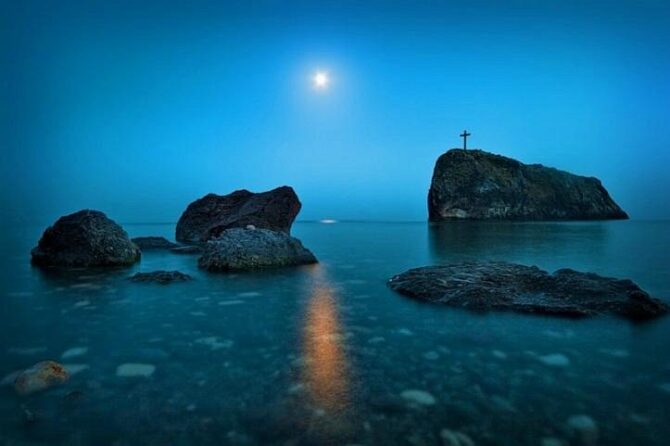 Есть достопримечательности, созданные руками человека, а есть те, которые сотворены природой. В Севастополе одним из самых живописных мест является мыс Фиолент. Он расположен в 15 км от центральной части города на Гераклейском полуострове юго-западного побережья Крыма. Поверхность мыса сформировалась благодаря извержениям древнего вулкана. По преданию именно на мыс Фиолент приплыл апостол Андрей Первозванный для того, чтобы проповедовать христианство в черноморских землях.