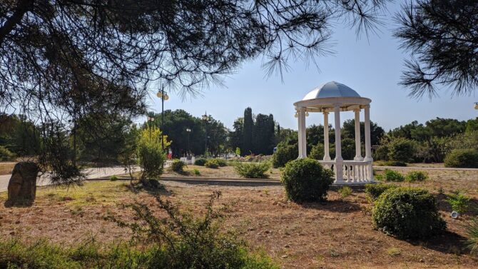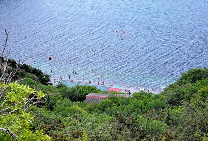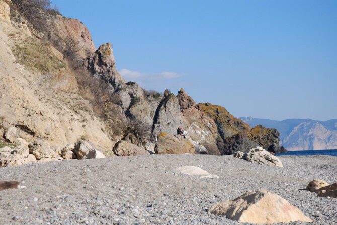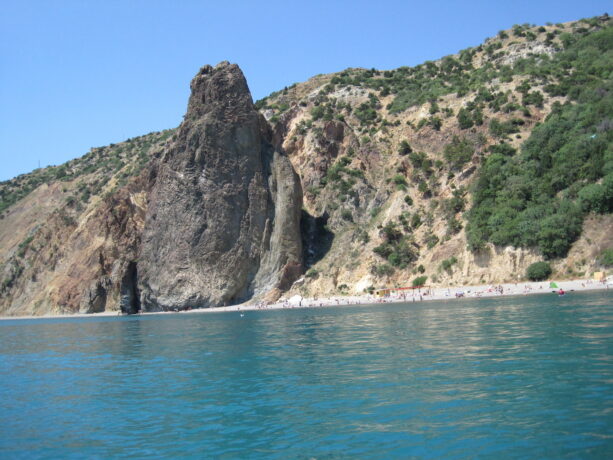 Яшмовый пляж считается самым красивым на мысе. Свое название он получил от того, что вкрапления этого минерала тут повсюду: в отвесных салах, в гальке и на морском дне. Чтобы сюда попасть, нужно спуститься по лестнице из 800 ступеней, начинающейся в скалах у подножья Свято-Георгиевского монастыря.