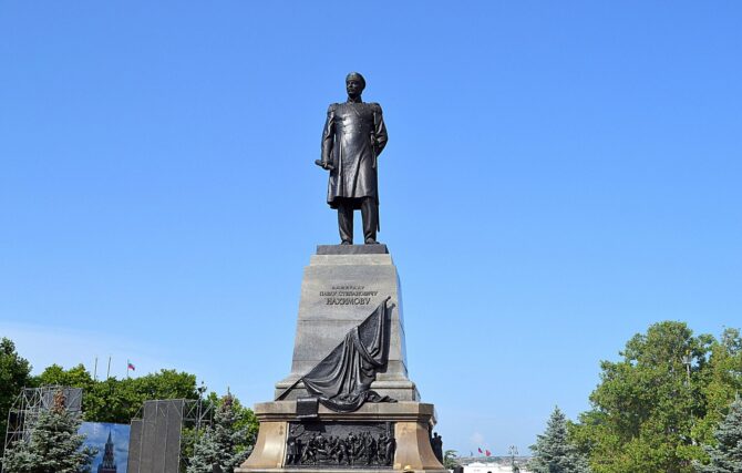 В историю России имя адмирала навсегда вошло в связи с героической обороной Севастополя и победой в Синопском сражении, в результате которого была полностью разбита турецкая эскадра. На горельефе в нижней части постамента изображены два сюжета, изображающие главные сражения времен Крымской войны и общение командующего флотом с рядовыми матросами. Во времена советской власти памятник Нахимову был демонтирован. Но позднее 1959 году историческая справедливость восторжествовала, и монумент был снова открыт. Только теперь он обращен лицом к городу, а не к морю, как было первоначально.