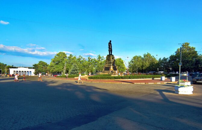В непосредственной близости от площади находится Приморский бульвар – это пешеходная зона, являющаяся наиболее людным местом в городе. Когда-то здесь располагалась Никольская батарея, ограждающая подступы к городу от возможных вторжений со стороны бухты. В ходе Крымской войны батарея была сильно повреждена и в течение 30 последующих лет простояла в руинах. В 80-е гг. место расчистили, и набережная стала оформляться как обширная зона для пеших прогулок со смотровыми площадками и тенистыми аллеями.