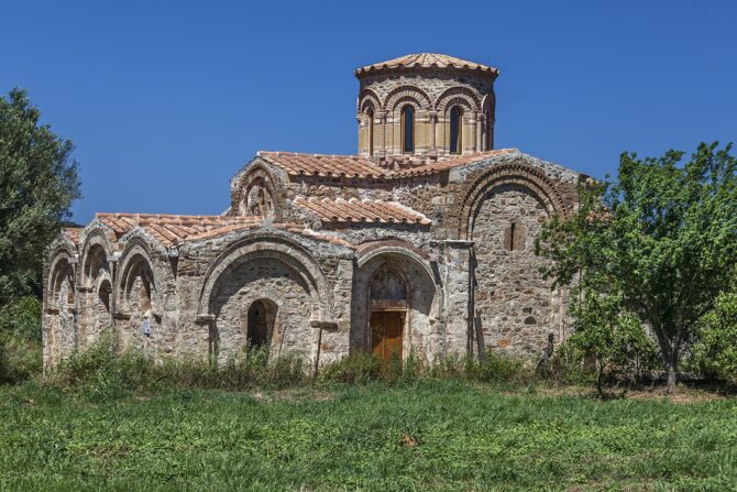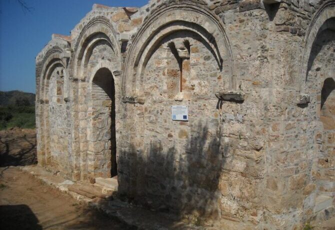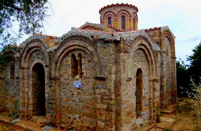Интересное название храма в переводе означает “Храм Животворящего Источника”. Построен он всего в 2 км от деревни Сфакаки. Довольно давно на этом месте располагался Венецианский монастырь, от него остались некоторые архитектурные элементы в храме: в плане здания лежит крест, в центре — купол. Реликвия Храма — это гробница Венецианского периода (16 век), на ней изображен родовой герб Тсангароло. Также внутри можно полюбоваться старинными фресками Петра и Павла, Пресвятой Богородицы.