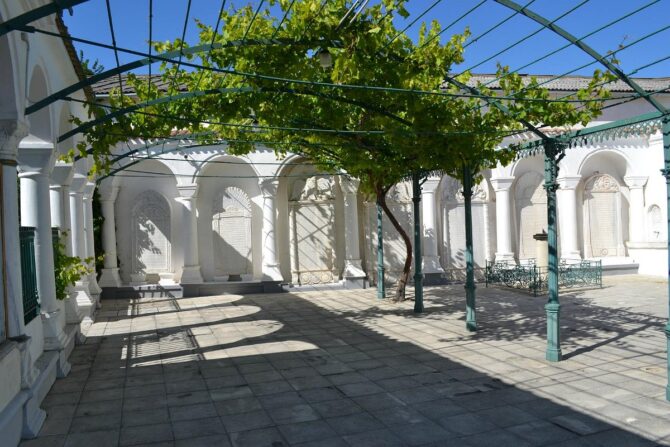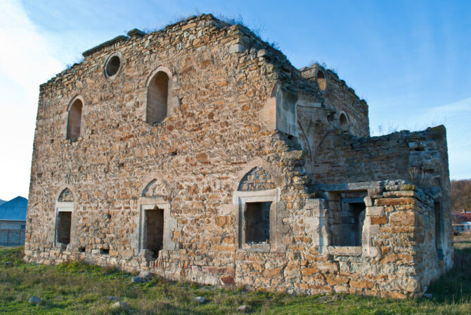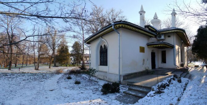 В 14 км от Симферополя в поселке Пионерский находятся руины одной из самых древних мечетей полуострова – Эски-Сарай. Она была построена в 14-м веке, когда Крым стал частью Золотой Орды. Исследователи утверждают, что рядом с ней находился дворец калги-султана (второго по значимости человека в государстве после хана) и монетный двор. От них ничего не сохранилось, даже упоминаний. Хотя первое современное описание мечети появилось еще в 1794 году. Заметку составил ученый-энциклопедист Петр Паллас (основатель Ботанического сада Симферополя). По мнению Павла Сумарокова, который путешествовал по Крыму в 1803 году, именно Эски-Сарай стала той Ак-мечетью, которая дала название средневековому Симферополю. Согласно описанию профессора Никольского, в 1923 году здание украшал купол, который до наших дней не сохранился. Но до сих пор строение впечатляет своими размерами и уникальной архитектурой.