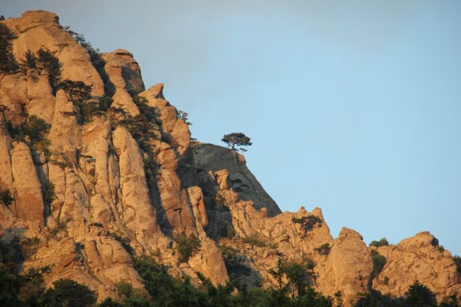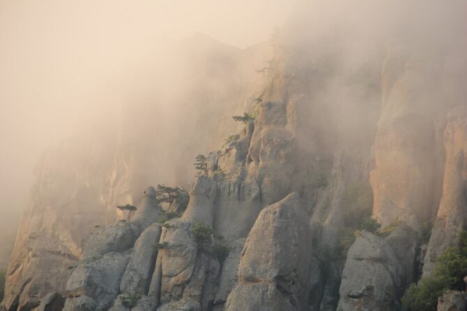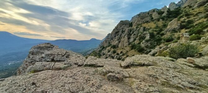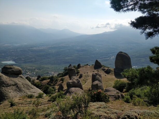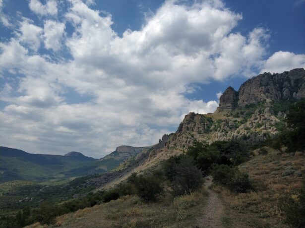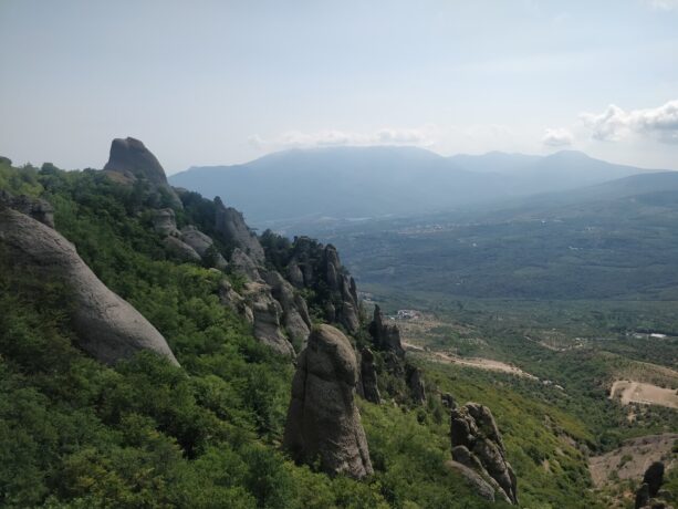 Напротив горы Чатырдаг находится вершина Демерджи. Ее склоны также интересны для прогулок, а с самой высокой точки, рядом с валуном, напоминающем голову Екатерины II, видна Алушта и море. Туристическая тропа проведет по живописным горным лужайкам, водопадам. По ней можно спуститься в Долину привидений, расположенную на южном склоне горы. Сегодня это популярная достопримечательность, поэтому за вход взимается символическая плата. Природа путем выветривания и вымывания горных пород, создала целую галерею причудливых скульптур. Среди них можно бродить часами, всматриваться в их образы и пытаться отгадать, на кого они становятся похожи в разное время суток.
