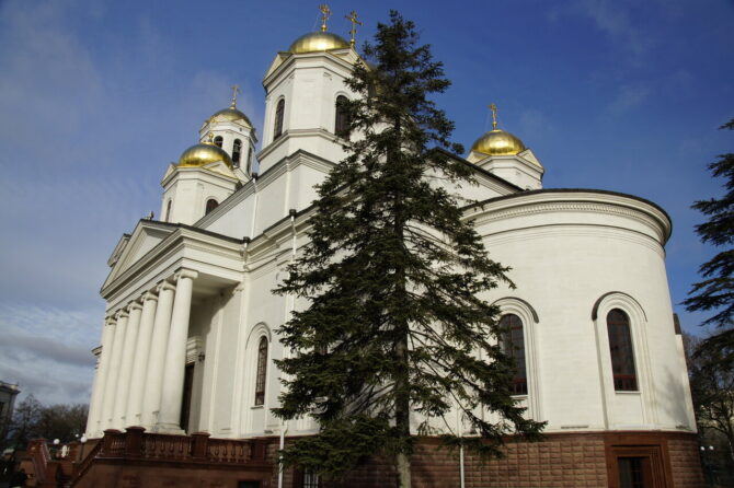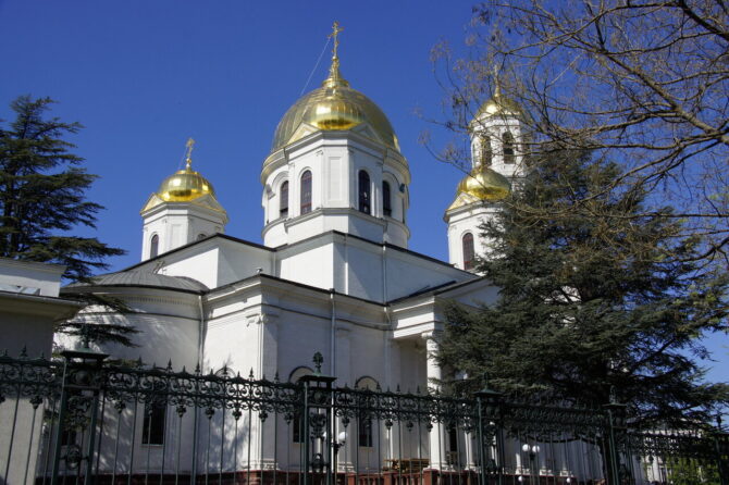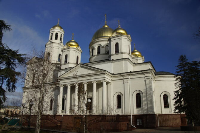 В 1930 году по распоряжению советских властей храм взорвали, перед этим забрав все ценные реликвии. Новую жизнь он получил в 2002 году, когда началось его восстановление. Работы завершились к 2015 году. сегодня великолепный православный собор занимает площадь более 2-х тысяч квадратных метров. Проект составляли по сохранившимся фотографиям и рисункам. Храм построен в стиле классицизма. Его украшают золотые купола и высокая колокольня. Паломники приезжают сюда, чтобы поклониться мощам Святого Гурия.