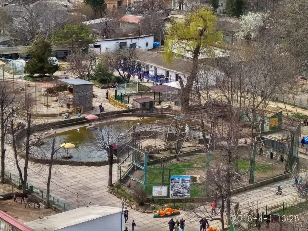 В самом центре Симферополя расположен детский развлекательный парк. В 1958 году на его территории был открыт небольшой зооуголок. В то время малыши могли понаблюдать за утками, гусями, курами, кроликами и обезьянками. Постепенно стали появляться другие животные. Благодаря обмену между зоопарками Советского Союза в Симферополь привезли медведей, волков, верблюдов, страусов и других обитателей диких природных зон. В результате получился хоть и небольшой, но настоящий зоопарк. Его территория увеличилась, а в последние годы появился Аквариум, в котором посетители могут понаблюдать за жизнью подводного мира.