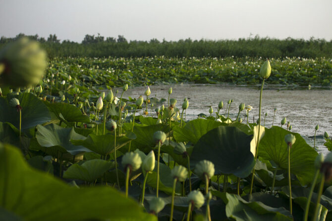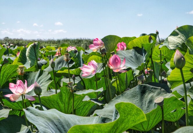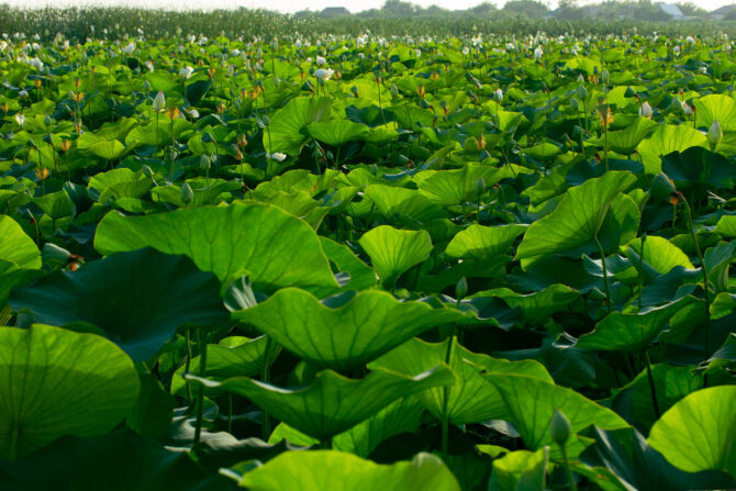 За эти годы лотосы разрослись и покрыли всю водную поверхность озера. На их широких листьях теперь обитают довольные жизнью лягушки. В отличие от других лотосовых озер, где экскурсии проводятся на лодках, через этот водоем проложен мост. С него можно наблюдать за цветами, фотографировать их и наслаждаться волшебным ароматом.