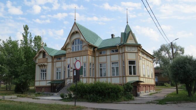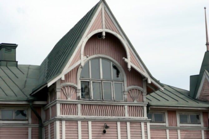Это здание когда-то было одним из самых богато украшенных в городе и является важной частью его облика. При строительстве здания архитектор руководствовался принципами эклектичного деревянного зодчества. .