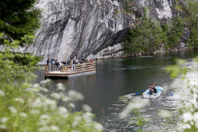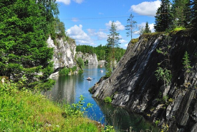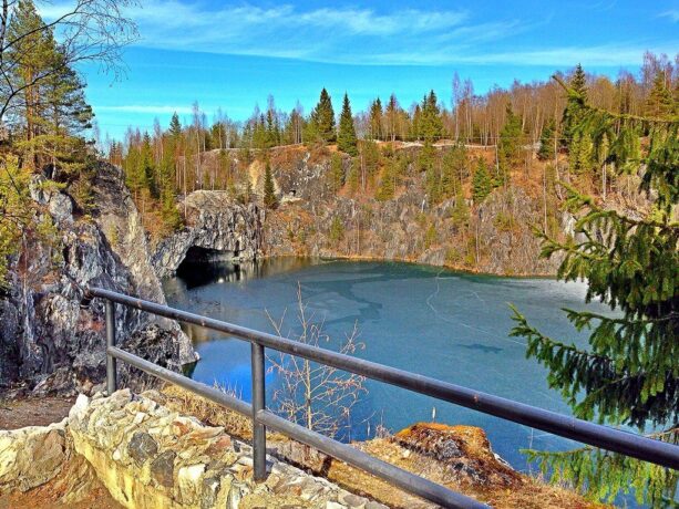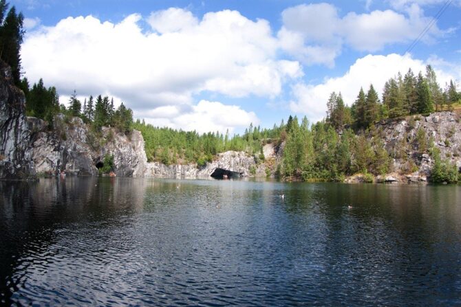 Горный парк Рускеала, пожалуй, одна из самых посещаемых достопримечательностей Карелии. Находится парк в 36 км от города Сортавала, недалеко от поселка Рускеала. Рядом протекает река Тохмайоки, что в переводе с финского означает «сумасшедшая».