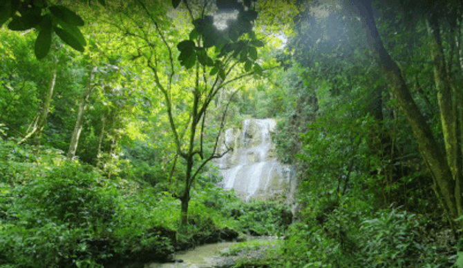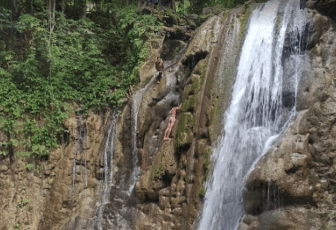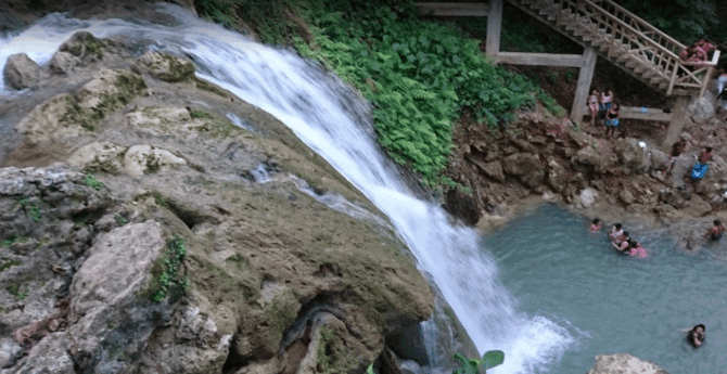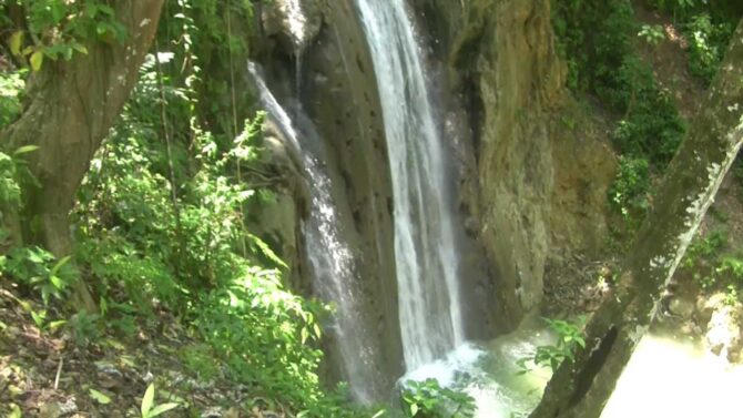 Водопад высотой около 20 м и мощным потоком воды. Не высыхает даже в засушливый сезон, и многие местные жители часто приезжают к нему на отдых и купание. Обратите внимание, что заход в воду по крупным камням, и детям нужна помощь взрослых, а также удобная обувь для всех.