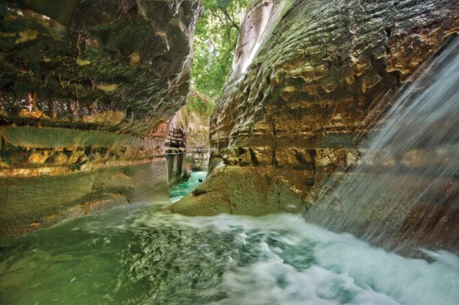 Путь к водопаду Cascada de Las Golondrinas — уже интересное приключение, и не зря туристические эксперты считают регион идеальным для экотуризма в Доминикане. Водопад питается водами красивой реки, но подняться к ней возможно только по извилистой дорожке.
