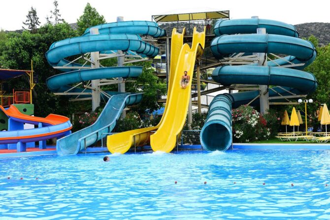 Другой аквапарк в окрестностях Херсониссоса (5 км от города) не менее привлекателен для отдыха родителей с детьми. Это вторая по величине аквазона водных аттракционов и развлечений на Крите (самый крупный «Water City» находится в Ираклионе). У «Acqua Plus» имеются свои достоинства. Во-первых, он построен на горе в красивой парковой зоне. Во-вторых, рядом расположено поле для гольфа. В-третьих, горки, аттракционы и бассейны устанавливались с учетом рельефа местности, поэтому здесь всё очень органично и уютно. У аквапарка есть второе неформальное название – «Райский сад».