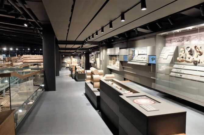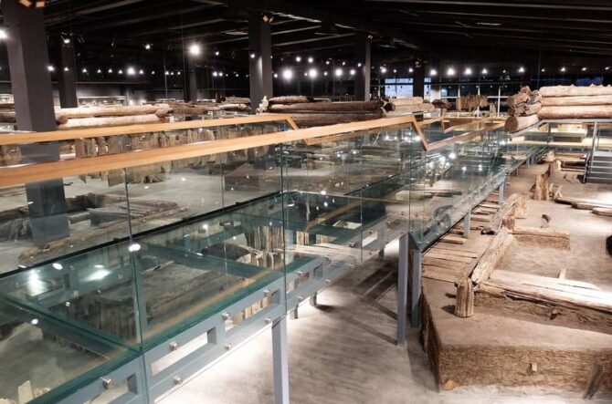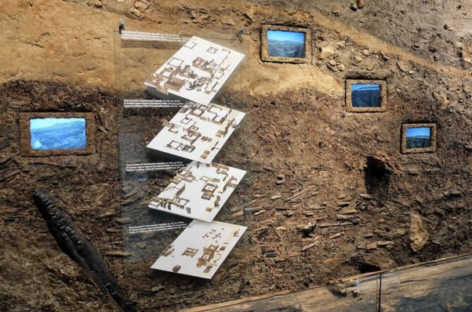 - мостовые, срубы домов, фрагменты заборов и другие образцы городской застройки XVI–XVIII веков, обнаруженные за долгий период раскопок;