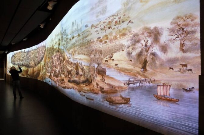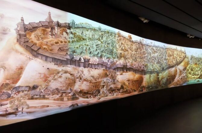 - анимационное панно, воспроизводящее жизнь Свияжска XVII столетия; автору проекта Р. Сафиуллину и его помощникам удалось изобразить 120 бытовых сцен и 450 персонажей, упоминавшихся в исторических документах.