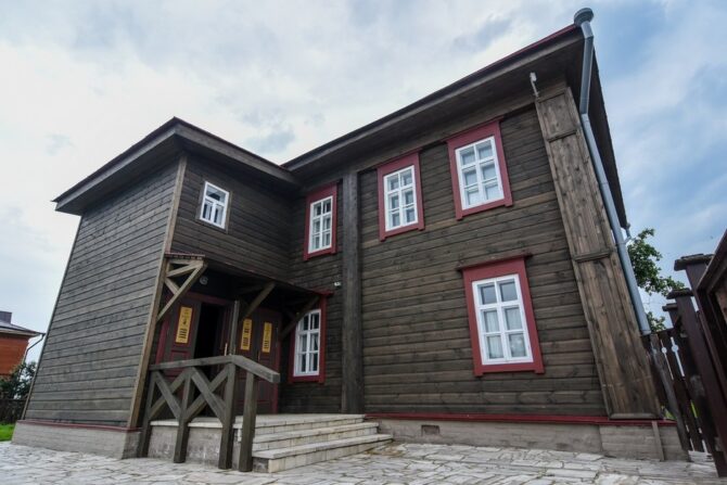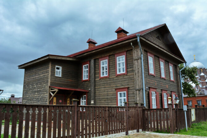 К востоку от территории Успенского собора расположен двухэтажный особняк XIX столетия. Классический архитектурный стиль каменного здания выделяет сооружение среди соседних деревянных и кирпичных домов. До 2009 г. помещения особняка использовались административными, тюремными и образовательными учреждениями.