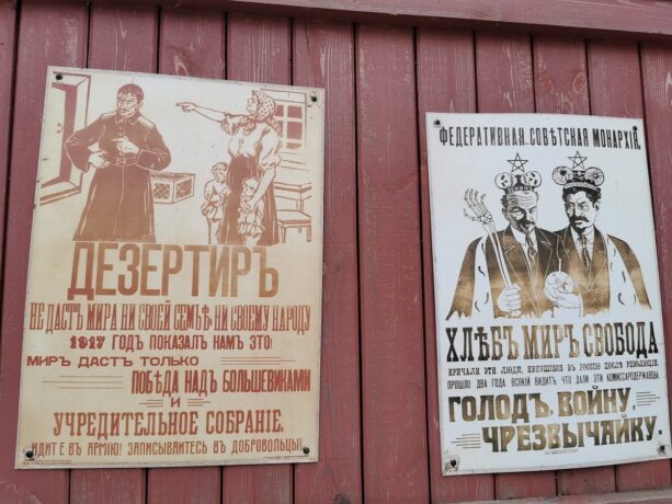 Для посетителей демонстрируется короткометражный документальный фильм, рассказывающий о событиях периода Гражданской войны. Среди героев киноленты — Лев Троцкий.