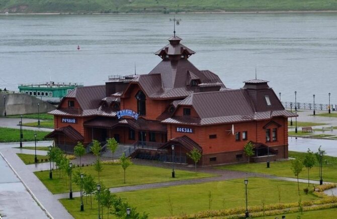 Напротив Дома гончара возвышается двухэтажное краснокирпичное здание, немного похожее на русский терем. Здесь располагается речной вокзал села. Здание построено по проекту Е. Игнатьева в июле 2011 г. Чтобы войти внутрь, необходимо подняться по девятиступненчатой лестнице.