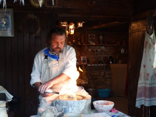 Евгений Иванов — талантливый мастер, самостоятельно обучившийся искусству изготовления изделий из глины, — приехал на остров из Нижнего Новгорода. Первая мастерская располагалась на территории «Конного двора». Сейчас Дом гончара постоянно переполнен гостями.