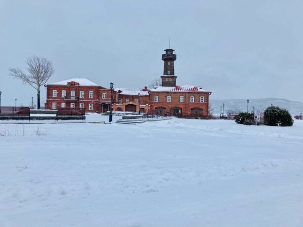 Зимой здание пустует. Туристы, желающие сделать несколько снимков фасада речного вокзала, приходят сюда круглый год.