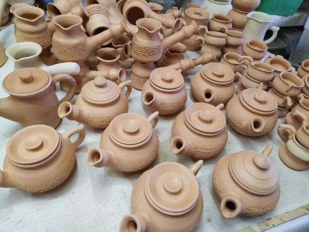 Каждый желающий может стать участником мастер-классов и попробовать вылепить из глины незамысловатые изделия. Многие посетители покупают посуду, созданную мастером. В доме можно увидеть образцы изделий из глины: