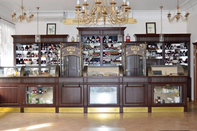Если для проживания были выбраны отели в центре, например, 4-звездочная «Армения» или хостел «Катарина», то начать экскурсионную прогулку можно со старейшей в городе аптеки. Ее открыл коллежский асессор, провизор Фердинанд Георгиевич Белявский в середине 19 века. Вплоть до 2011 года здесь продавались медикаменты. Сегодня в помещении создан единственный в России аптечный музей. В экспозиции воссоздан дух эпохи позапрошлого столетия: повсюду развешаны сушиться лекарственные травы, в склянках живут настоящие пиявки, а в витринах выставлена коллекция мухоморов. Посетителям расскажут, как и из чего приготавливались лекарства прошлых лет. Аптека напрямую связана с соседним Домом Крафта. Это был мало кому известный аптекарь. Его имя и дом использовал художник Леонид Тишков. Теперь здесь находится галерея современного искусства, посетить которую можно отдельно или купив единый билет на обе экспозиции. Аптека и галерея являются отделами Тульского историко-архитектурного музея.