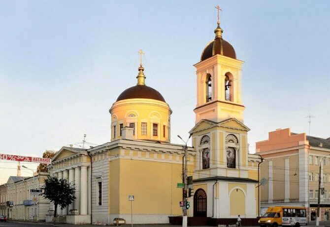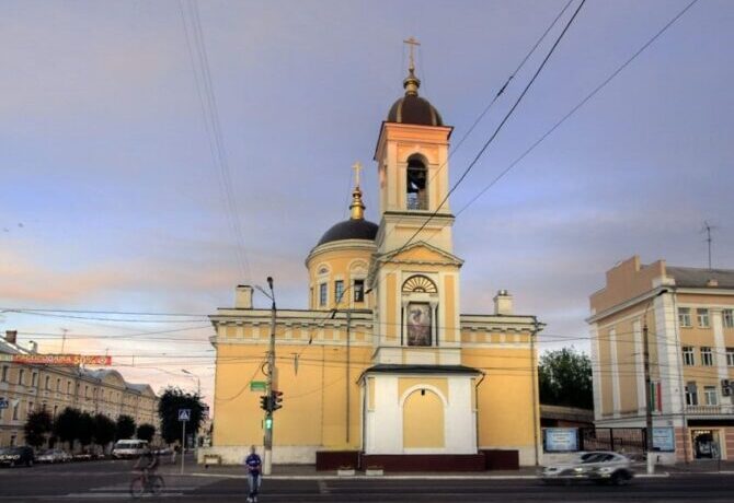 Храм был построен в 1722 году в стиле нарышкинского барокко. В 1799-1800 годах его внутренние стены были украшены росписью художником-иконописцем Матвеем Челповским. В советские времена собор был закрыт, в его помещениях располагались выставочные залы картинной галереи. В 1994 году храм был возвращен РПЦ, проведена его полная реставрация, но в период с 2005 по 2010 годы, несмотря на протесты общественности, старинная роспись была полностью уничтожена. Храм является действующим, в нем регулярно проводятся богослужения. Рядом находится Речной вокзал, который захватил большую часть бывшего монастырского двора.