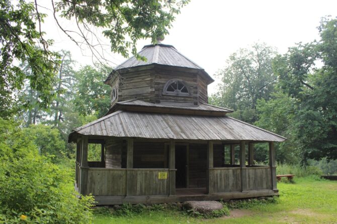 Из деревни Пылево были доставлены церковь Знамения, карельский дом и амбар. Знаменская церковь строилась в 1742 году. По типу она принадлежит к древним клетским церквям. Село Пылево (Весьегонский район) до образования Тверской губернии относилось к Новгороду, поэтому в конце 17-го века сюда переселились несколько карельских семей. Они привнесли в культуру и зодчество мотивы своего народа. Таким образом в этнографическом музее появились экспонаты, отличающиеся от местных архитектурных направлений.