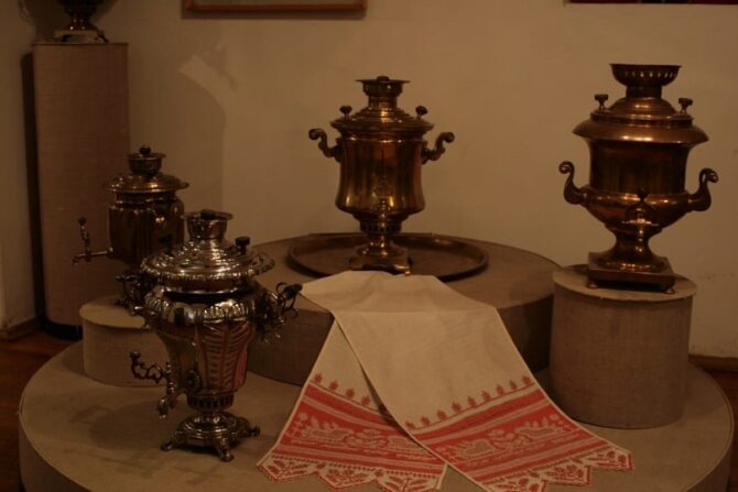 Сегодня в музее работают две основные экспозиции. «В гостях у тверских купцов» — это полное воссоздание интерьеров жилых помещений купеческих домов конца 19-го века. Полностью обустроены прихожая, гостиная, спальня, детская комнаты, кабинет хозяина. В оформлении использована подлинная мебель того периода, декоративные элементы, детские игрушки. «Русские самовары. Тверское чаепитие» — это воссоздание интерьера русской чайной. Выставочные экспонаты расположены тут же. Это сбитенники, самовары, чаеварки, посуда и утварь для чаепития.