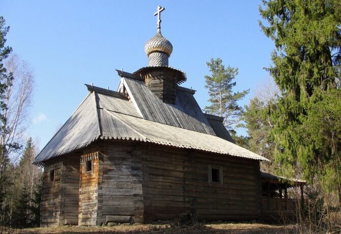 Преображенская церковь погоста Спас на Сози была перевезена из Калининского района. Она относится к типу «клетских» церквей с пристроенной трапезной. К 70-м годам ХХ века постройка полностью обветшала. На ее реконструкцию были выделены деньги, а сама постройка перевезена в Василево в 1975 году.