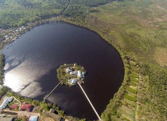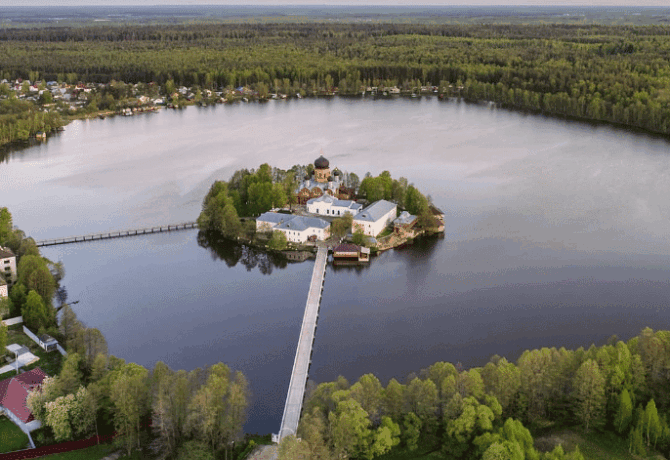 Православный, ныне женский, монастырь был основан на острове посреди Введенского (бывшего Вятского) озера в 1708 году. К началу 20-го века обитель владела большими земельными угодьями, не ее территории была основана Воскресная школа, братья-монахи отпускали сотни бесплатных обедов для нуждающихся людей. В 1918 году земли и строения были национализированы. Их вернули церкви только в 1991 году. В 1995 году монастырь возродился. Теперь здесь живут сестры-монахини. Отреставрированы, возрождены и открыты для посещения следующие объекты: Введенский собор, Никольская церковь, Настоятельный корпус, Звонница и келейные корпуса.