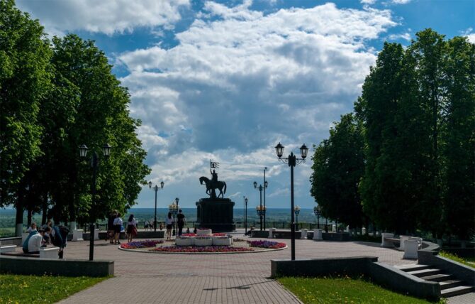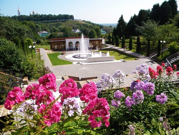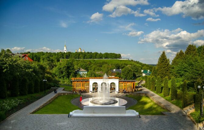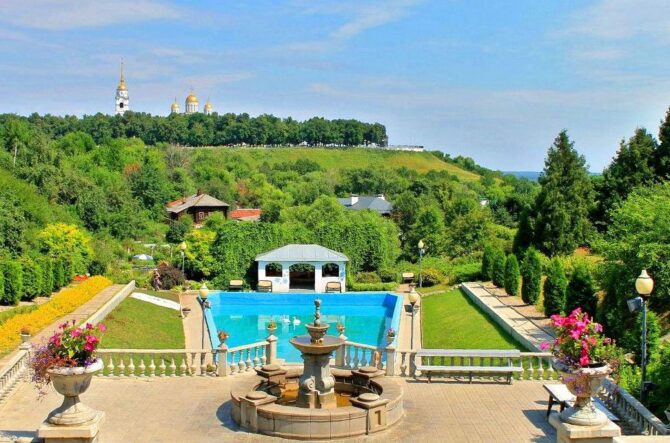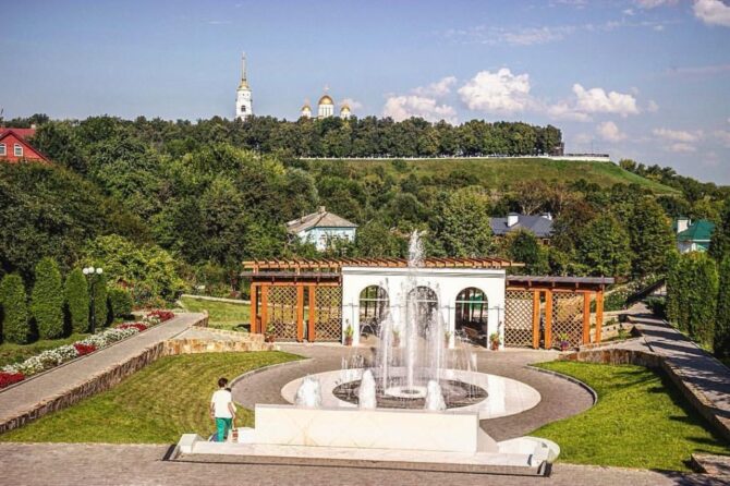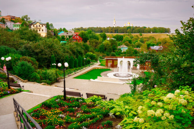 Еще несколько видовых площадок расположены в Патриаршем саду на Спасском холме. Это центр города, а само место было обустроено еще во времена Андрея Боголюбского в 12 веке. Когда-то здесь произрастали плодовые деревья и пять сортов вишен. Как дань уважения и любви к самому красивому уголку Владимира, у входа установлена скульптурная композиция в виде ягод вишен. Со смотровых площадок открываются удивительные виды на Клязьму, храмы, пруды, фонтаны и другие красоты окрестности. Сад является любимым местом для фотосессий. Здесь можно сделать удивительные фотографии, которые украсят странички в соцсетях или семейный фотоальбом. Вход на территорию платный. Взрослый билет стоит 150 руб., детский – 50 руб. Если есть желание сэкономить, то с 11.00 до 15.00 в будни всех посетителей пускают на территорию по единой стоимости в 50 руб.