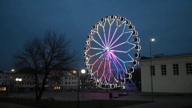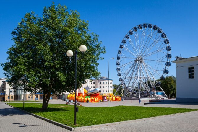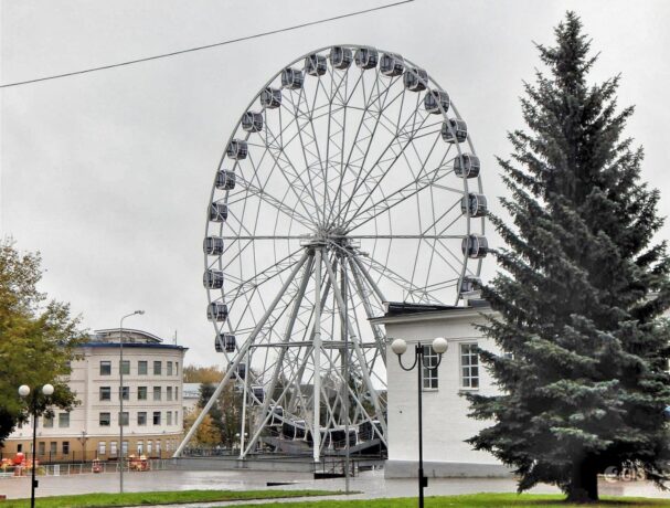Невозможно представить себе крупный областной центр с древнейшей историей без аттракциона «Колесо обозрения». Достопримечательность «Небо 33» появилась в 2015 году и сразу стала самой посещаемой. Высота колеса составляет 50 метров. Оно входит в десятку самых высоких колес обозрения в России. По вечерам территория вокруг аттракциона и небо подсвечивается всеми цветами радуги. Название выбрали сами горожане в результате конкурса. Цена для взрослого человека составляет 200 руб., для детей от 3-х до 10 лет – 150 руб.