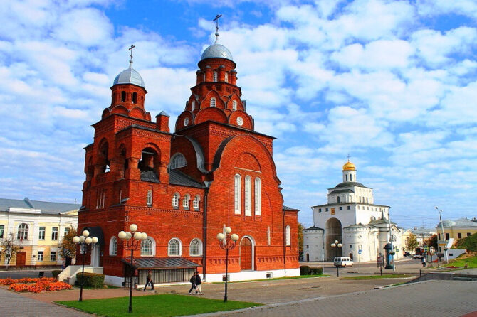 Владимирцы часто называют ее Красной церковью. Храм строился общиной старообрядцев. Автором проекта выступил архитектор Сергей Жаров, который и руководил строительством с 1913 по 1916 годы. Архитектурный ансамбль возле Золотых ворот дополняли два храма не православной конфессии – польский костел и немецкая кирха (была снесена в советское время). Жаров построил старообрядческий храм в неорусском стиле. В 1928 году здание было передано городскому совету управления, и долгое время его использовали для разных муниципальных нужд. Благодаря стараниям горожан и писателя Владимира Солоухина церковь не снесли, а отдали Владимиро-Суздальскому музею-заповеднику в 1971 году. До сих пор здесь работает экспозиция «Хрусталь. Лаковая миниатюра. Вышивка». Объект также интересен с архитектурной точки зрения. Цены, как и в других городских музеях Владимира – 100-150 руб.