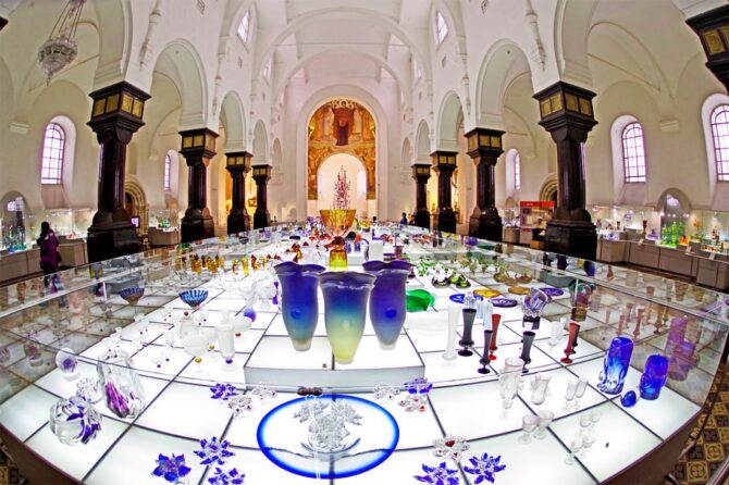 Чтобы побольше узнать о традиционных русских ремеслах нужно отправиться в здание старообрядческой Троицкой церкви. Здесь с 1974 года открыта уникальная экспозиция хрустальных изделий, лаковой миниатюры и традиционной вышивки. На выставочных стендах размещены произведения искусства, созданные в Гусь-Хрустальном последних двух столетий и начала 21-го века. На первом этаже открыта сувенирная лавка, где можно приобрести посуду из хрусталя, павловские платки, гжельскую керамику и другие красивые вещи, созданные по старинным технологиям.