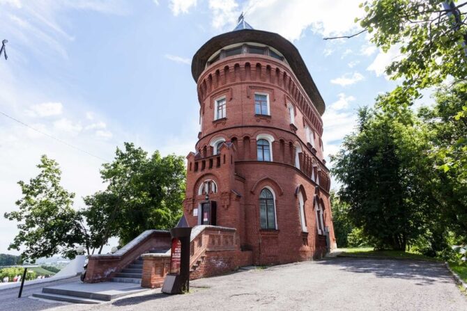 Недалеко от Золотых ворот находится старинная водонапорная башня. Объект был отдан Владимиро-Суздальскому музею-заповеднику. В нем было решено создать музей «Старый Владимир». В России это был первый случай, когда водонапорную башню превратили в полноценную историческую экспозицию. Собранные экспонаты рассказывают о жизни, быте, культуре города в предреволюционный период. Сама башня является одним из символов Владимира. Она возведена в 1912 году городским архитектором Сергеем Жаровым. Ранее на этом месте находилась башня, спроектированная немецким инженером Диллем. Он специально разрабатывал строительные чертежи, учитывая специфику старейшего в России владимирского водопровода. Затем ее снесли и построили новую, в которой в 1975 году открылся этот уникальный музей.