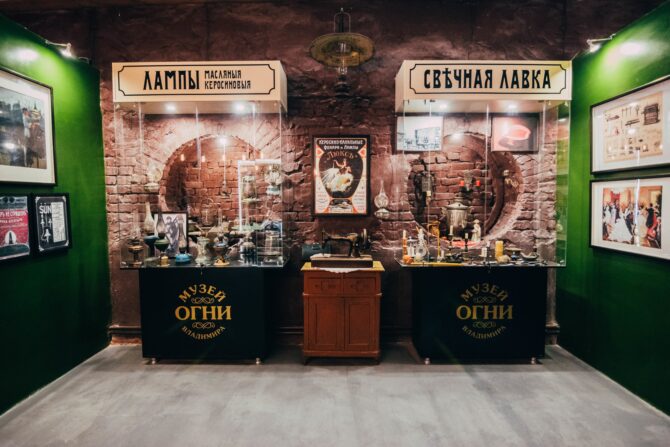 Частная тематическая экспозиция музея «Огни Владимира» посвящена истории освещения и электрификации города. Он открылся в 2016 году. В фонде хранятся разные виды осветительных приборов, начиная от лучины и заканчивая новейшими электрическими лампами. Сотрудники проводят интерактивные экскурсии, во время которых экспонаты можно трогать руками, осматривать, знакомится с внутренним устройством. Билеты от 250 до 150 руб., время работы – с 10.00 до 20.00 ежедневно, без обеда и выходных. Экскурсии проводятся каждый час.