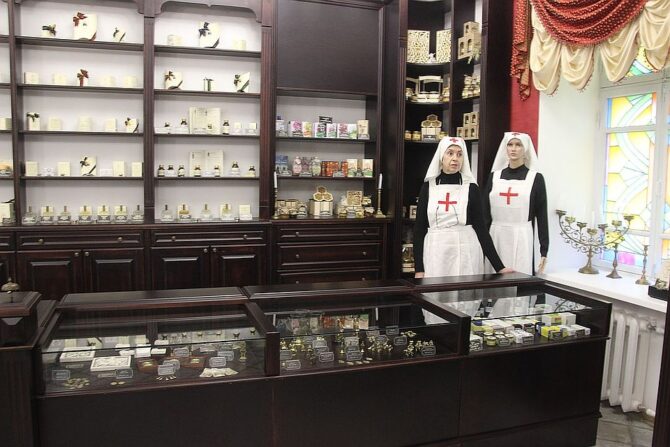 Рядом с кузницей Бородиных открыт музей «Старая аптека». Зданию и самой аптеке уже более 200 лет. Она была открыта в 1781 году. Перед входом установлена скульптура, посвященная аптекарю прошлых столетий. В 1987-88 годах была проведена полная реставрация здания. Со дня открытия и до 1990 года здесь работала самая настоящая аптека. Но с наступлением новых времен, запас ее прочности иссяк. Власти задумались над тем, как сохранить архитектурный памятник и историческое наследие города. Помещение пустовало до 2015 года, пока Георгиевскую улицу не превратили в пешеходную зону. С 2017 года в Старой аптеке создан одноименный музей. Цена билета 200 руб.