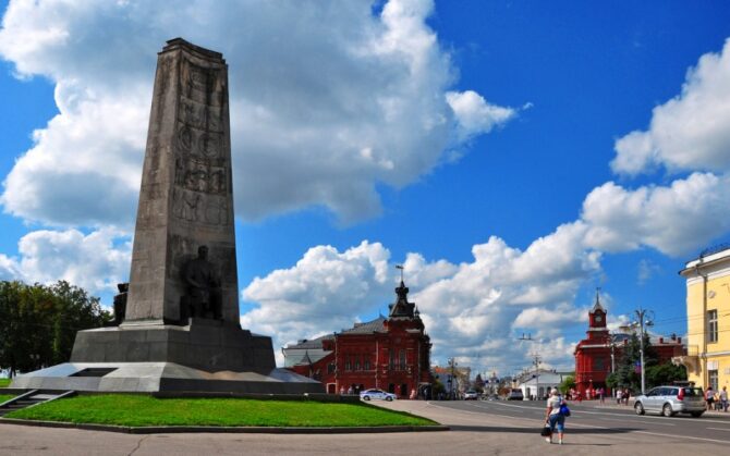 Исторически сложившийся центр города находится на Соборной площади. После революции она была переименована в площадь Свободы, но в 1991 году вернула свое прежнее название. Здесь расположены два храма 12 века – Успенский и Дмитриевский. Они возвышаются над Клязьмой и во многом определяют внешний вид города. Каждый дом представляет собой отдельную архитектурную историю. Наибольший интерес вызывают памятники, установленные на площади. В самом центре возвышается монумент в честь 850-летия Владимира. Его создал скульптор Даниил Рябичев. Открытие состоялось в 1958 году. Автор изобразил связь поколений с помощью художественных образов воина, фигура которого обращена к оборонительным Золотым воротам, зодчего, устремившего взгляд на Успенский собор, современного рабочего, который стал олицетворением развития промышленного комплекса города. В 1925 году в небольшом сквере возле исторического здания банка был установлен памятник Ленину. В 1995 году появился памятник Андрею Рублеву, а в 2008 – основателю города князю Владимиру Красное Солнышко.
