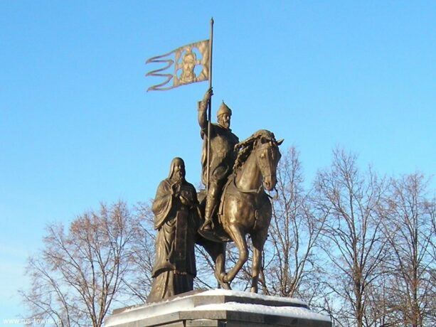 Смотровая площадка в парке Пушкина является местом расположения памятника основателю города князю Владимиру Красное Солнышко, и священнослужителю Федору, крестившему население Владимирской земли. Открытие приурочили к празднованию 850-летию переноса столицы из Киева во Владимир. Над композицией работал московский скульптор, заслуженный художник России Сергей Исаков. Средства выделил Фонд Святителя Николая Чудотворца. В день открытия памятник освятил архиепископ Владимирский и Суздальский Евлогий.