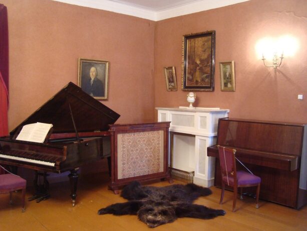 Первый этаж занимают выставочные залы Константина Батюшкова. Здесь воссоздана атмосфера начала 19-го века, когда жил и творил поэт. Экспозиция второго этажа переносит посетителей на столетие вперед – в начало 20-го столетия, когда сюда приезжал писатель Куприн. Литературный музей был основан в 1960 году. Особый интерес представляет старинный парк версальского типа, который высадили вокруг усадьбы в 1813 году пленные солдаты наполеоновской армии.