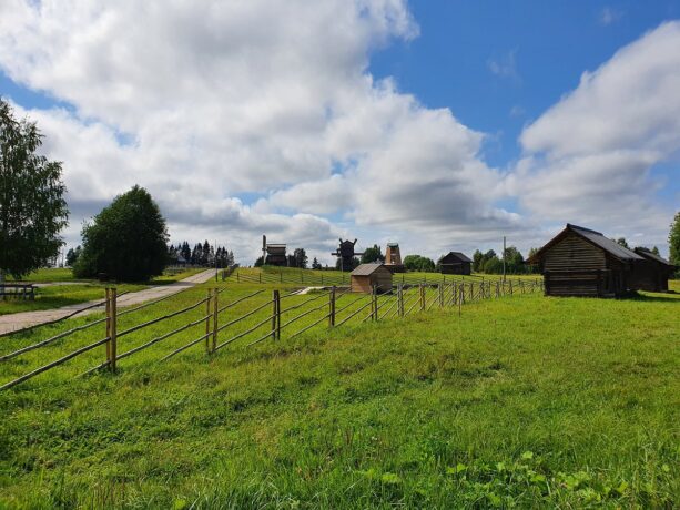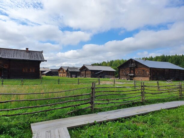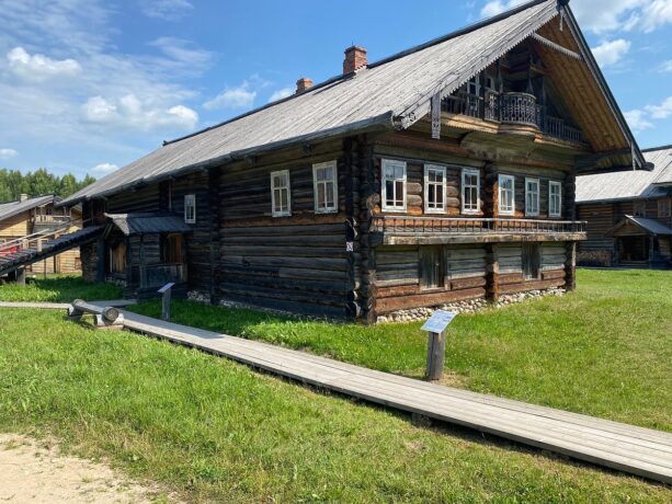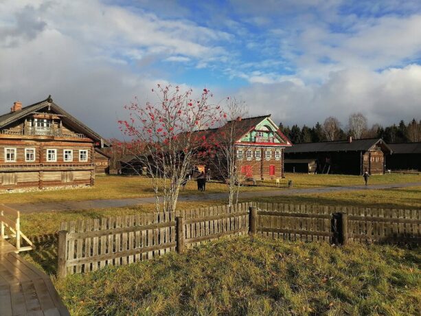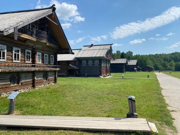 Экскурсионный тур по Вологде будет незаконченным, если не посетить этнографическую деревню. Она находится в 12 км от города, регулярно ходит общественный транспорт. Здесь собраны дома и постройки 19 — начала 20 веков, имеющие статус памятников русского деревянного зодчества. Самым новым объектом является деревянная часовня, а самой старой – крестьянский дом Кочкиных из Тарногского района. Все дома и постройки (6 амбаров, ледник и баня) установлены с учетом ландшафтных особенностей. Здесь есть хвойный и лиственный лес, водоем, болото, просторный луг, на котором проводится традиционная «Вологодская ярмарка». Сотрудники комплекса устраивают народные гуляния и фольклорные мероприятия.