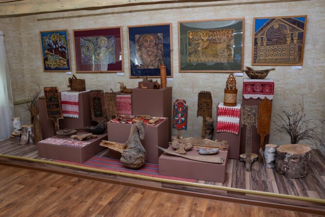 Отдельно представлена выставка вологодского резчика по дереву Евгения Курочкина. Среди экспонатов – панно, картины, скульптуры автора. Особый интерес представляют игрушки, вырезанные из дерева. Это яркие самобытные образы ремесленников, горожан, крестьян, святых покровителей русского Севера. Недавно у художника родилась концепция Театра деревянной игрушки. Он уже представил публике декорации к пушкинской «Сказке о рыбаке и рыбке». Пока они сложены в большой расписной сундук и ждут своего часа, чтобы вместе с кукловодами «выступить» перед зрителями. Для создания музея был предоставлен старинный двухэтажный дом с подворьем. Здесь можно не только полюбоваться работами кустарей, но и самим принять участие в мастер-классах. Каждую неделю проводятся мероприятия «Душевные четверги». Выставочный зал принимает посетителей ежедневно с 10:00 до 19:00.