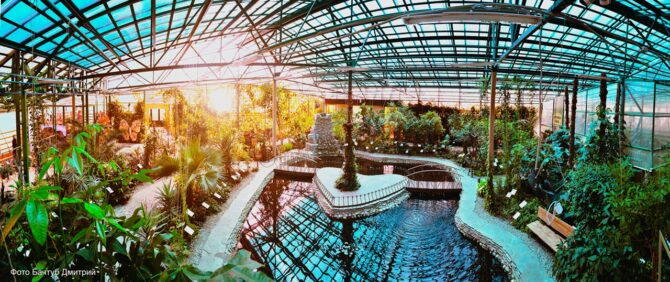 В Ботаническом саду можно посетить Бабочкин сад, в котором собраны 10 видов экзотических бабочек из Юго-Восточной Азии и Южной Америки. Здесь же организованы вольеры, в которых живут необычные животные и птицы со всех концов света. В учебном классе проводятся занятия и мастер-классы для желающих узнать побольше о живой природе. В центре тропических джунглей находится водоем с островом в форме сердца. К нему ведет ажурный мостик, на котором любят фотографироваться молодожены. В Ботанике не бывает плохой погоды. Это сад оранжерейного типа, где постоянно поддерживается температура воздуха от +20 до +25С.