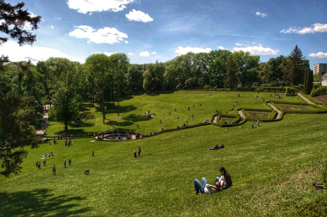 Площадь парка составляет 12 га. Здесь растут лиственницы, липы, березы, другие хвойные и лиственные деревья, декоративные кустарники, много трав и цветов. Встречаются небольшие водоемы. Их облюбовали стаи перелетных птиц, в частности, уток. Посетители любят подкармливать диких птиц. Те, в свою очередь, благосклонно принимают человеческие дары. На границах парка построены несколько жилых комплексов. В городе создано движение по спасению парка «Софиевка».