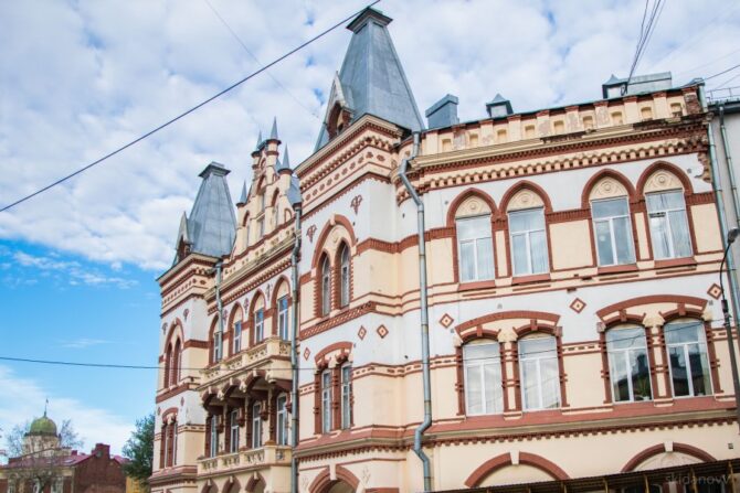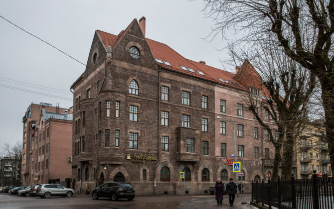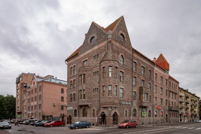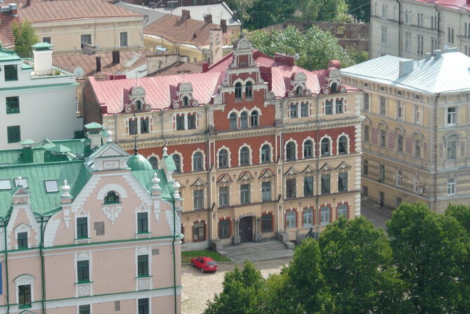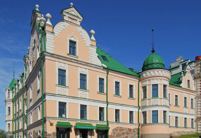 Недалеко от Выборгского замка расположился прекрасный дом в стиле модерн — Гранитный дворец. Ни один туристический маршрут не обходится без него. Дом отличается от многих В Выборге своим строгими формами и растительным орнаментом в отделке. Архитекторов вдохновила природа местности, и на фасадах есть изображения северных скальных ландшафтов.