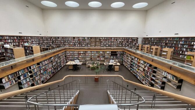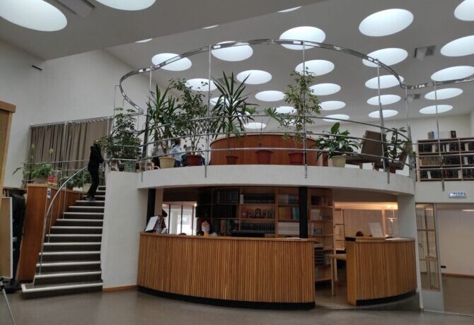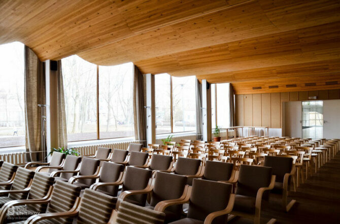 Крупные работы по реставрации сделали Библиотеку имени А.Аалто очень комфортной для посетителей, современной даже для нынешнего времени, что говорить о 1930-х годах: в здании нет окон, чтобы книги не портились, но при этом читальные залы полны света (окна расположили на потолке). Потолок здесь напоминает море, стулья и столы уникальной формы для удобства читателя.