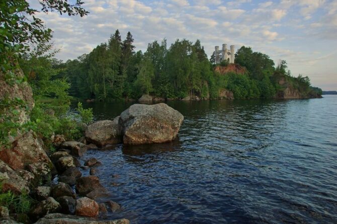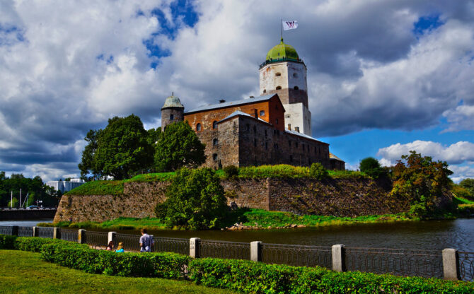 Замок в Выборге — это очень популярное место в 120 км от Санкт-Петербурга, расположен он на замковом острове и выделяется за счет архитектурно необычной башни Святого Олафа. На нее можно подняться и осмотреть окрестности Выборга. Крепость, или замок, был построен еще в 13 веке шведами, они контролировали территорию 4 века. Сейчас это часть музея-заповедника, как и многие другие исторические памятники Выборга. Очень соответствуют атмосфере места рыцарские турниры, которые здесь устраивают, концерты и праздники, проводят выставки.