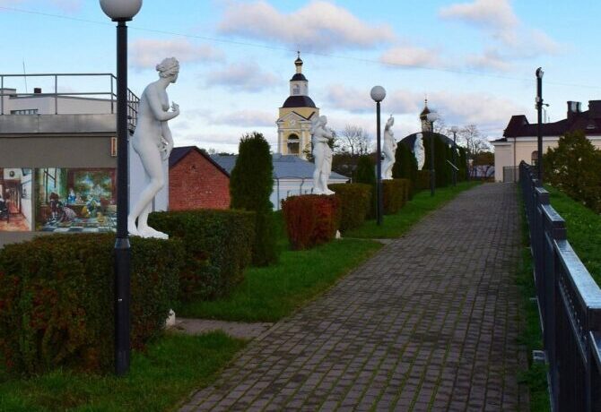 Аллея скульптур украшает пространство у известного выставочного центра “Эрмитаж-Выборг”, создали ее по решению главы Государственного Эрмитажа Михаила Пиотровского 10 лет назад. Первые скульптуры-копии работ итальянца А.Чибеи (16 век) установили на вершине бастиона Панцерлакс во время профильной выставки там.